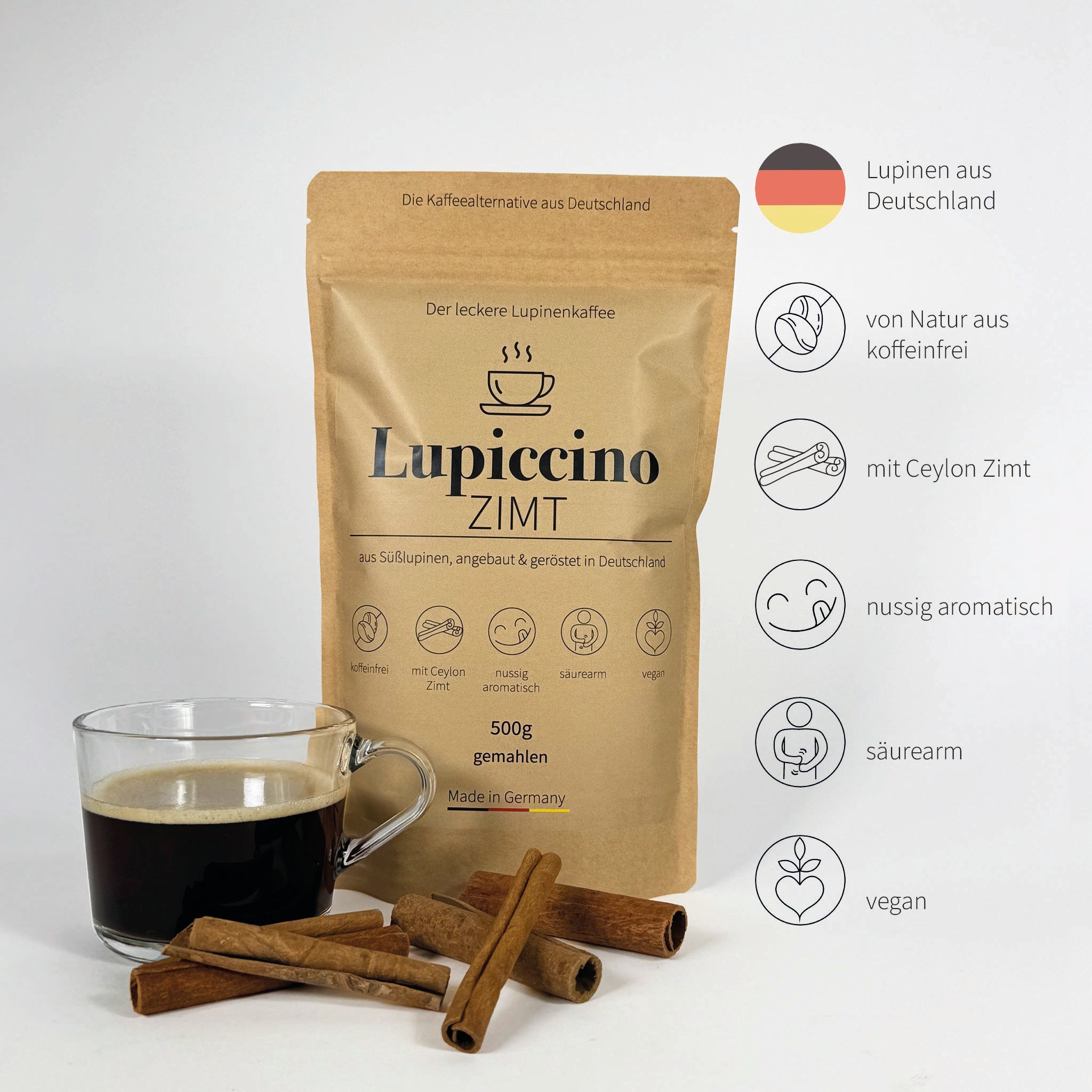 Entdecke unseren köstlichen Lupiccino Lupinenkaffee! Hergestellt in Deutschland aus den Samen der Süßlupinenpflanze, bietet er einen milden, vollmundigen Geschmack mit einer leicht nussig-schokoladigen Note. Die koffeinfreie Kaffeealternative eignet sich perfekt für Kaffeeliebhaber, die auf Koffein verzichten müssen oder möchten.