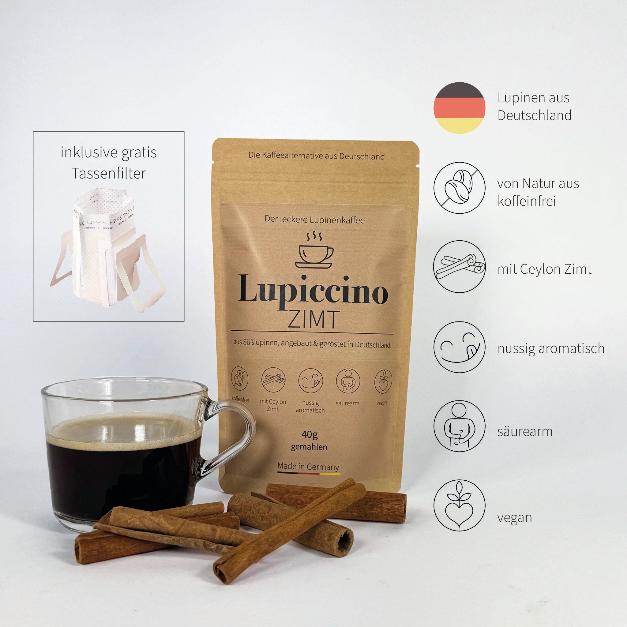 Entdecke unseren köstlichen Lupiccino Lupinenkaffee! Hergestellt in Deutschland aus den Samen der Süßlupinenpflanze, bietet er einen milden, vollmundigen Geschmack mit einer leicht nussig-schokoladigen Note. Die koffeinfreie Kaffeealternative eignet sich perfekt für Kaffeeliebhaber, die auf Koffein verzichten müssen oder möchten.